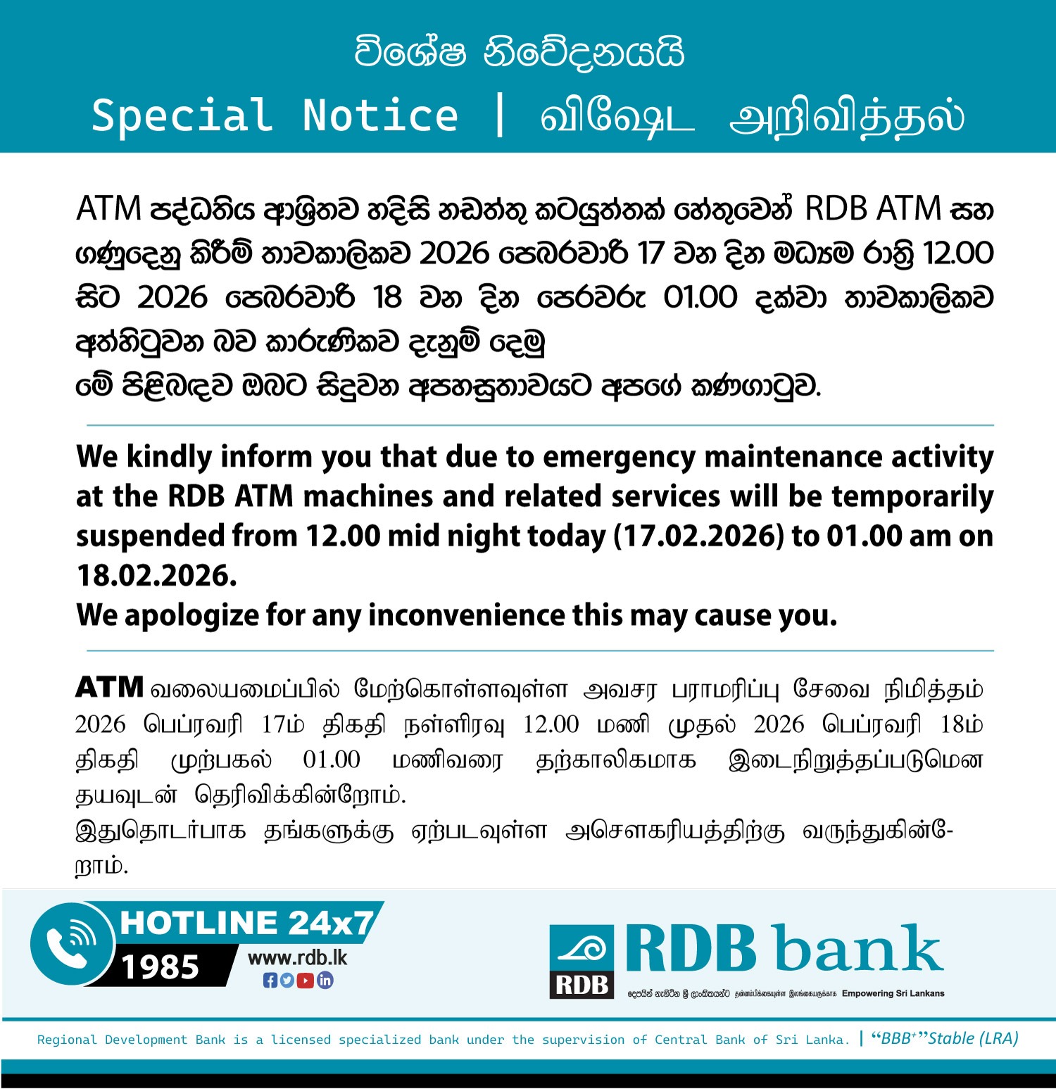 - Conduct an External Forensic Audit on the malpractices and irregularities that happened in respect of the Valaichchenai Branch – AGM/EA/RDB/2025-145 November 19, 2025