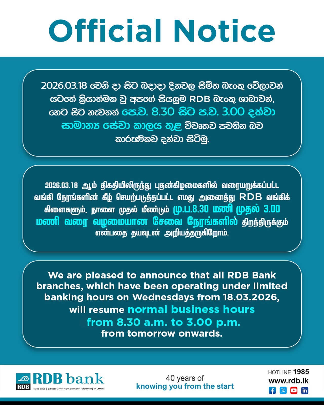 - ගණුදෙණු කරන වේලාව පිලිබඳ නිවේදනය අප්රේල් 9, 2026