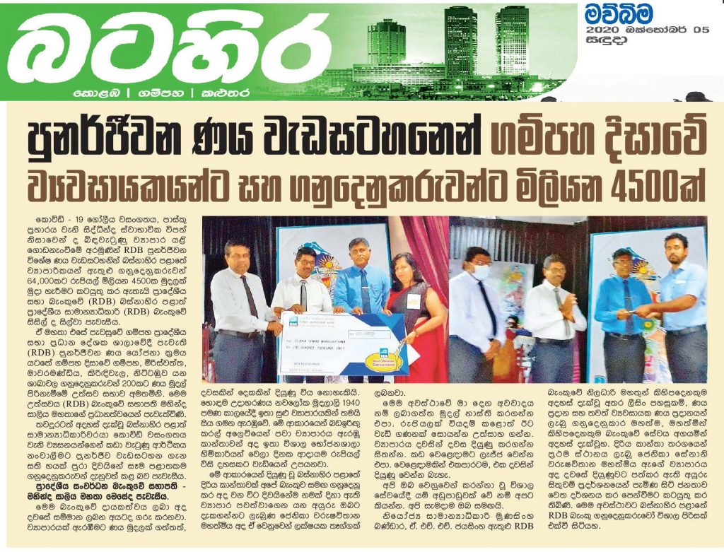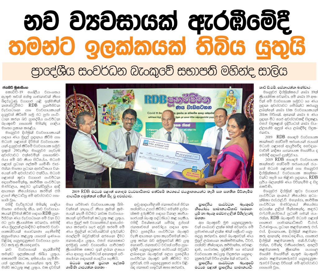 වස විසෙන් තොර ආහාර සංග්රාම ජාතික වැඩසටහනට සහය වීම සදහා ප්රාදේශීය සංවර්ධන බැංකුව කාබනික පොහොර නිපදවන ජාතික මටිටමේ ව්යවසායකයින් බිහිකිරීම සදහා ලංකාව පුරා ක්රියාත්මක කරන වැඩසටහන් මාලාවේ දකුණු පළාත් සමාරම්භය…