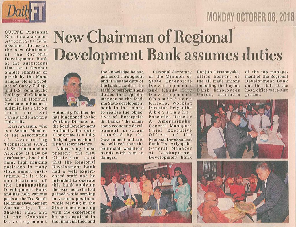 Mr. T. Kuhan assumes duties as the Acting General Manager / CEO of Regional Development Bank (RDB Bank) on 01.02.2019. Mr. Kuhan, a professional banker, joined RDB in September 2011 after serving…
