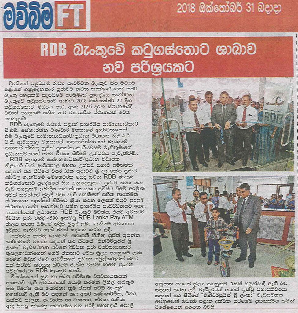 - Temporary Fee Waiver for RDB Cardholders Using RDB ATMs දෙසැම්බර් 1, 2025
