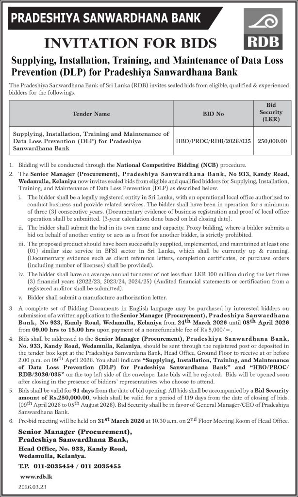 - Supplying, Installation, Training and Maintenance of Data Loss Prevention (DLP) for PSB மார்ச் 23, 2026
