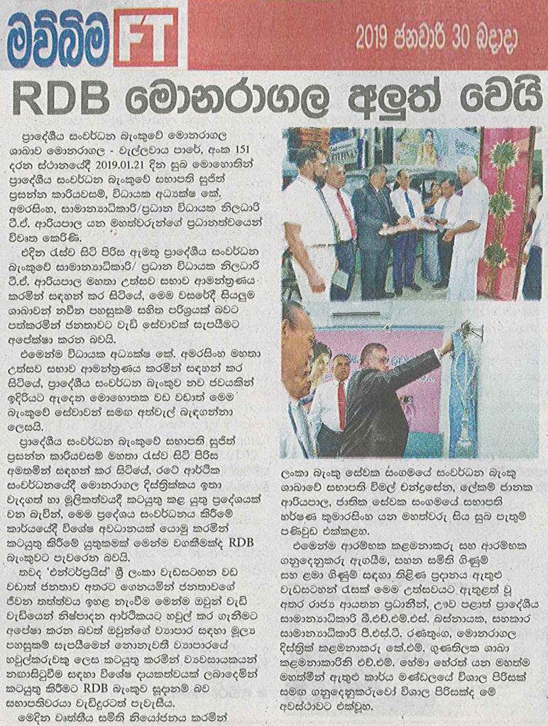 Mr. T. Kuhan assumes duties as the Acting General Manager / CEO of Regional Development Bank (RDB Bank) on 01.02.2019. Mr. Kuhan, a professional banker, joined RDB in September 2011 after serving…